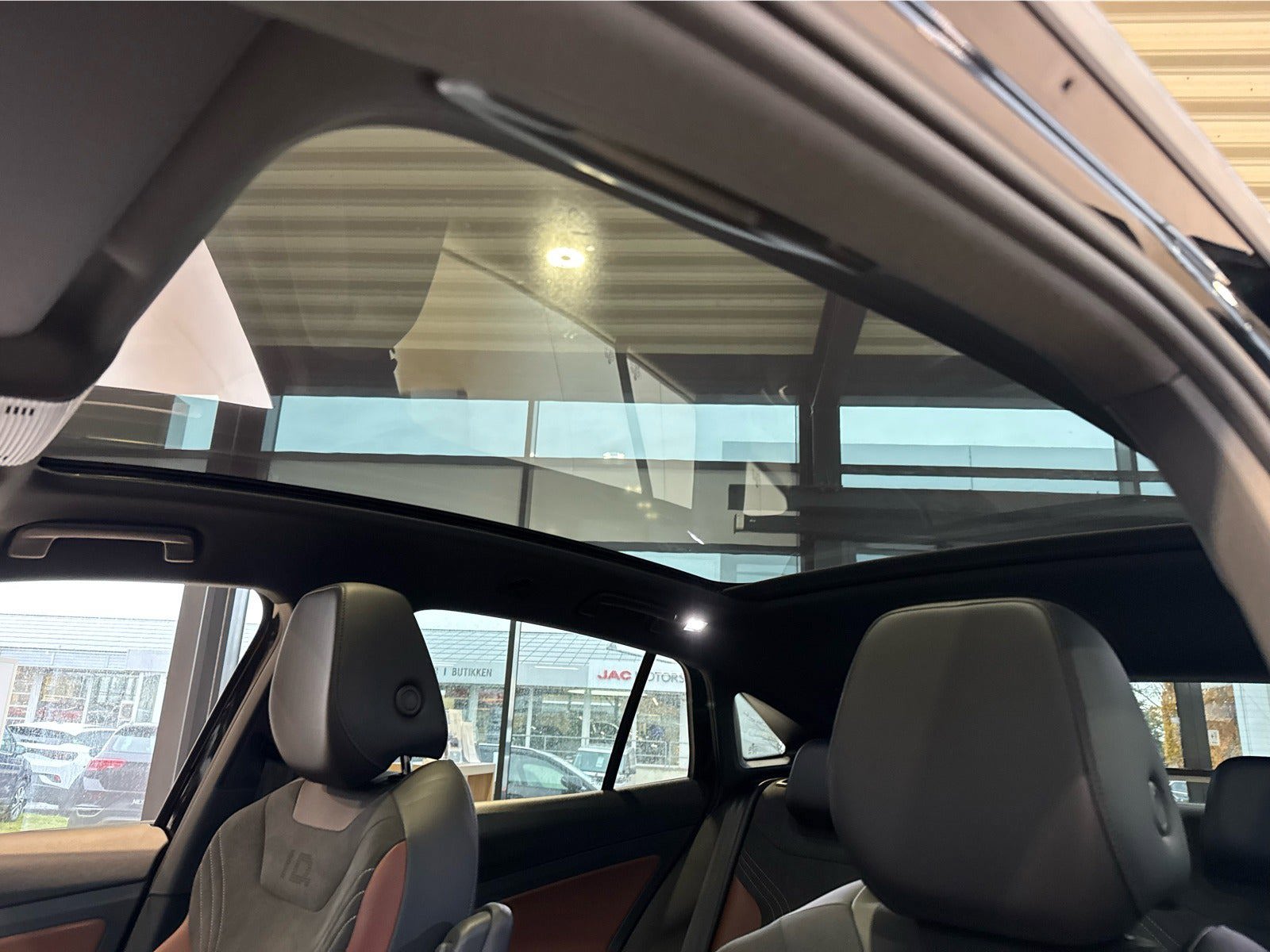 ✔️ Panoramaglastag i mørkt glas med elektrisk solgardin